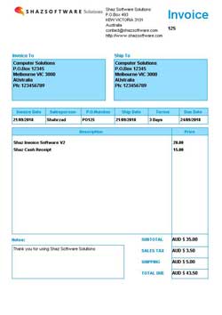 - Shaz Invoice Software 2020 has Five Two Columns Invoices that are named as Simple, Micro, Poster, Paper, and Last.