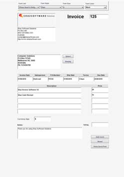 - Select an Invoice and type in your Invoice details in provided Text Boxes and try not to exceed the size of each Text Box for best result.